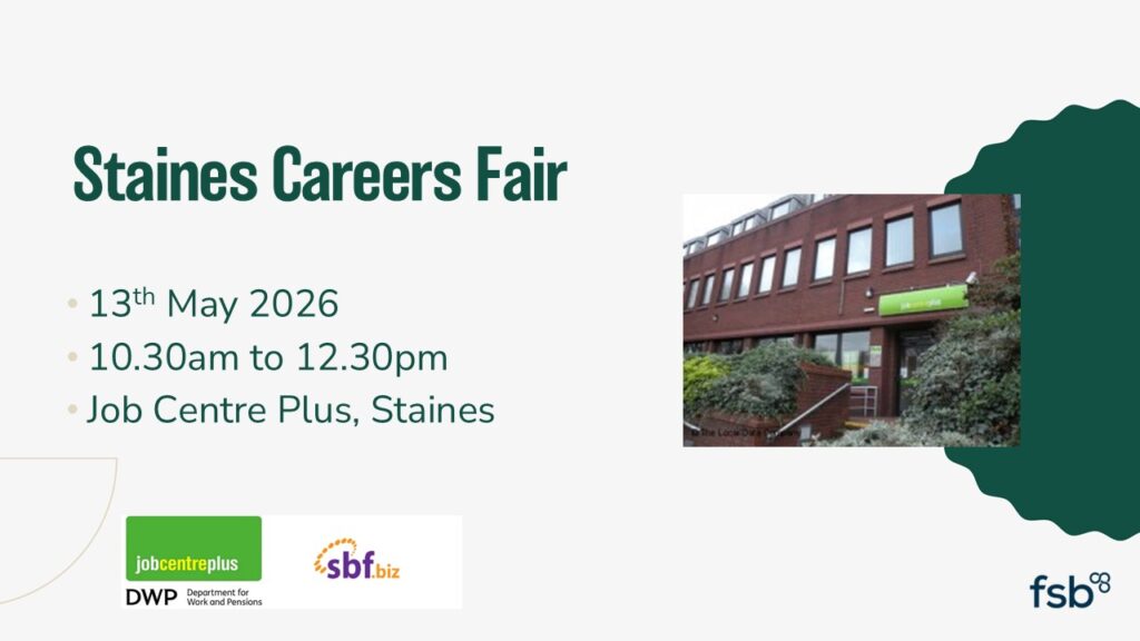 Looking to meet motivated local talent and raise your business profile in the community? We’d love you to be part of our upcoming Staines Careers Fair — a fantastic opportunity to connect directly with jobseekers, showcase your business, and find your next great hire.
